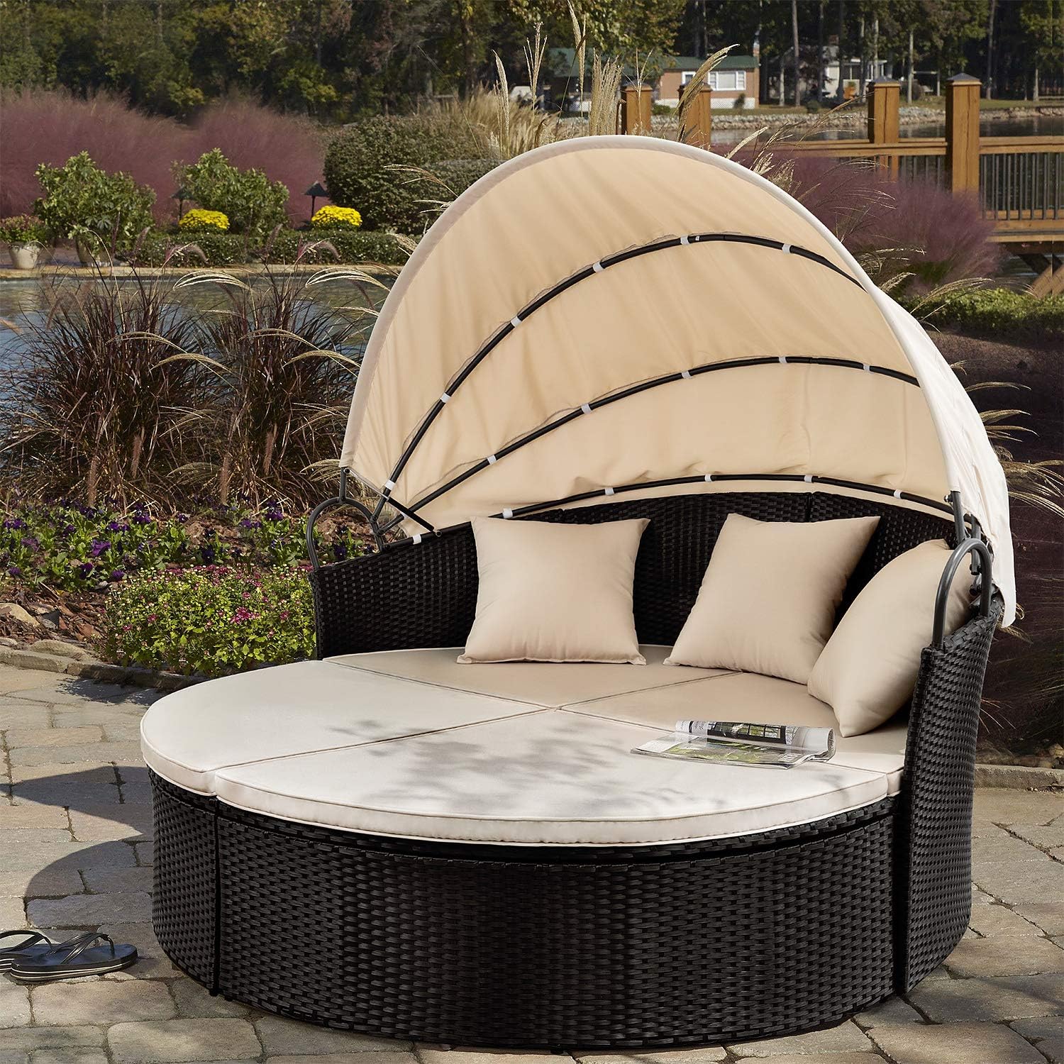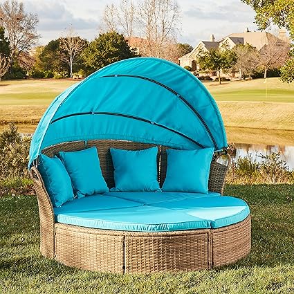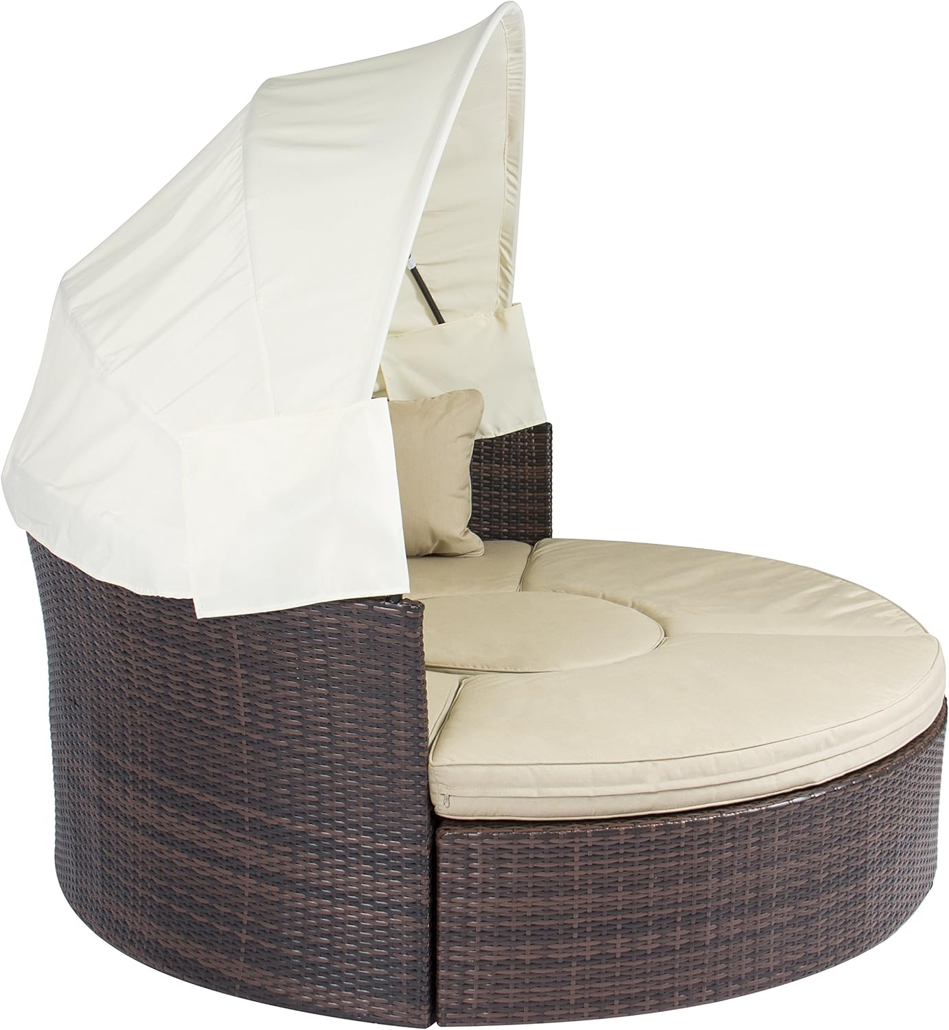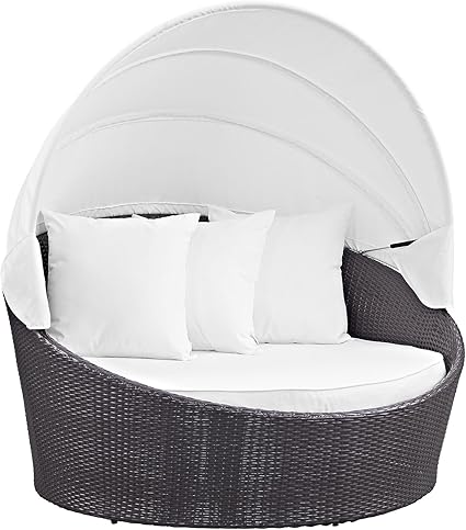 Suncrown outdoor patio round daybed with retractable canopy, brown wicker furniture clamshell. Not only hotels but also houses are using outdoor round daybeds with canopy to get an awesome comfortable feeling. A modern outdoor daybed is a cross between a chaise, a sofa, and a bed. With an outdoor daybed you can relax by the pool or enjoy the sun in your backyard patio. Costway daybed patio sofa furniture round retractable canopy wicker outdoorby costway(1).